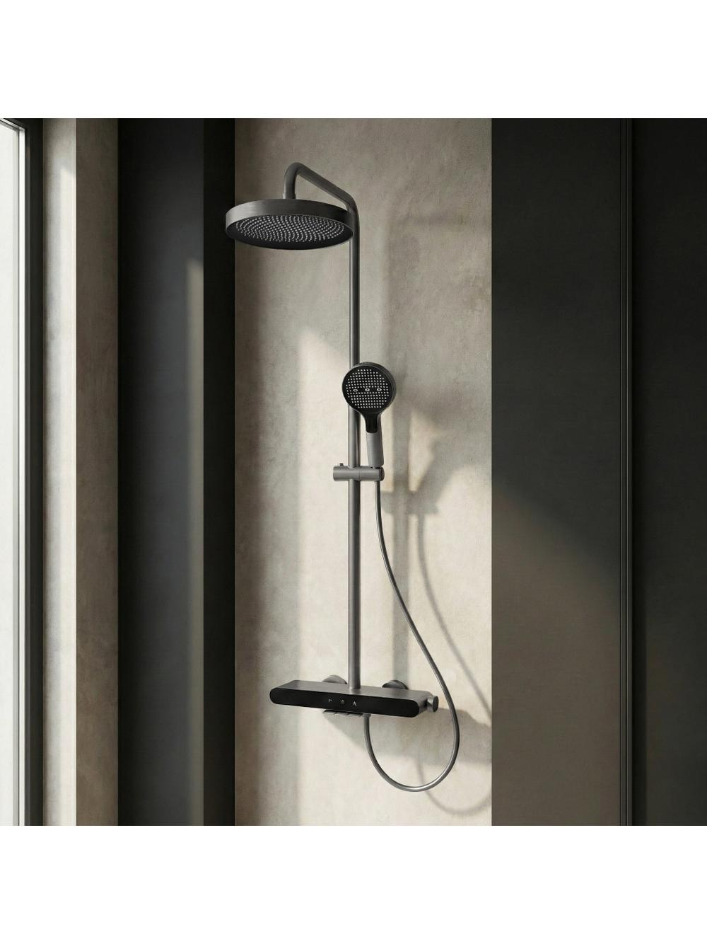 Transformați baia dvs. într-un spațiu industrial chic cu setul de duș expus Rea Farel Titan. Această opțiune, cu o finisare titan periat, este alegerea perfectă pentru cei care doresc o alternativă la negru și crom. Designul său metalic și brut se îmbină perfect cu facilitățile inovatoare de control și întreținere a curățeniei. Culoarea elegantă Titan - o nuanță grafit fin periată - oferă un aspect modern și practic, reducând vizibilitatea picăturilor de apă și a amprentelor. Tehnologia avansată PVD garantează o rezistență deosebită la zgârieturi, matuire și coroziune.