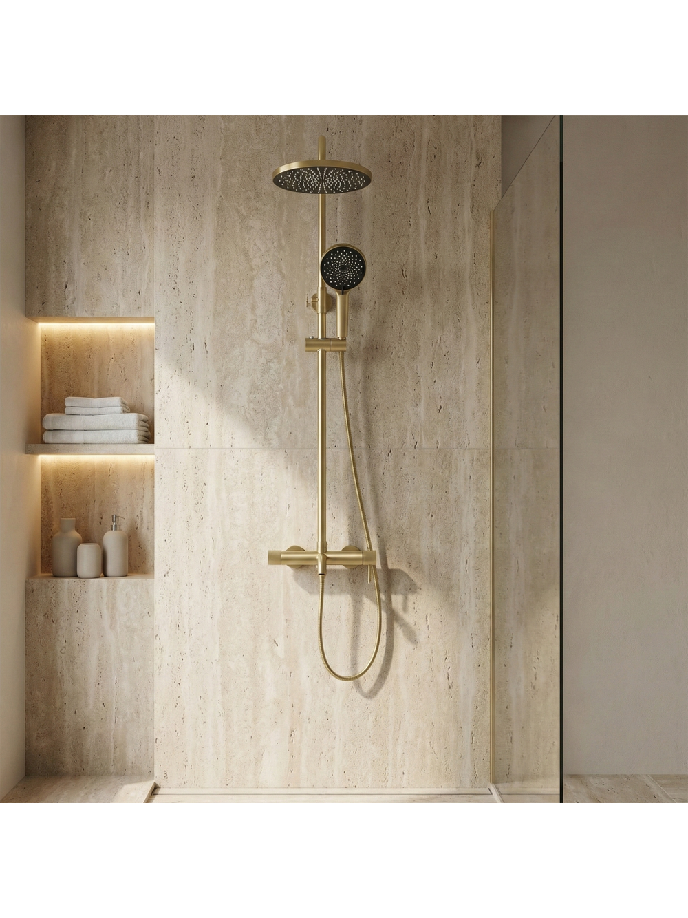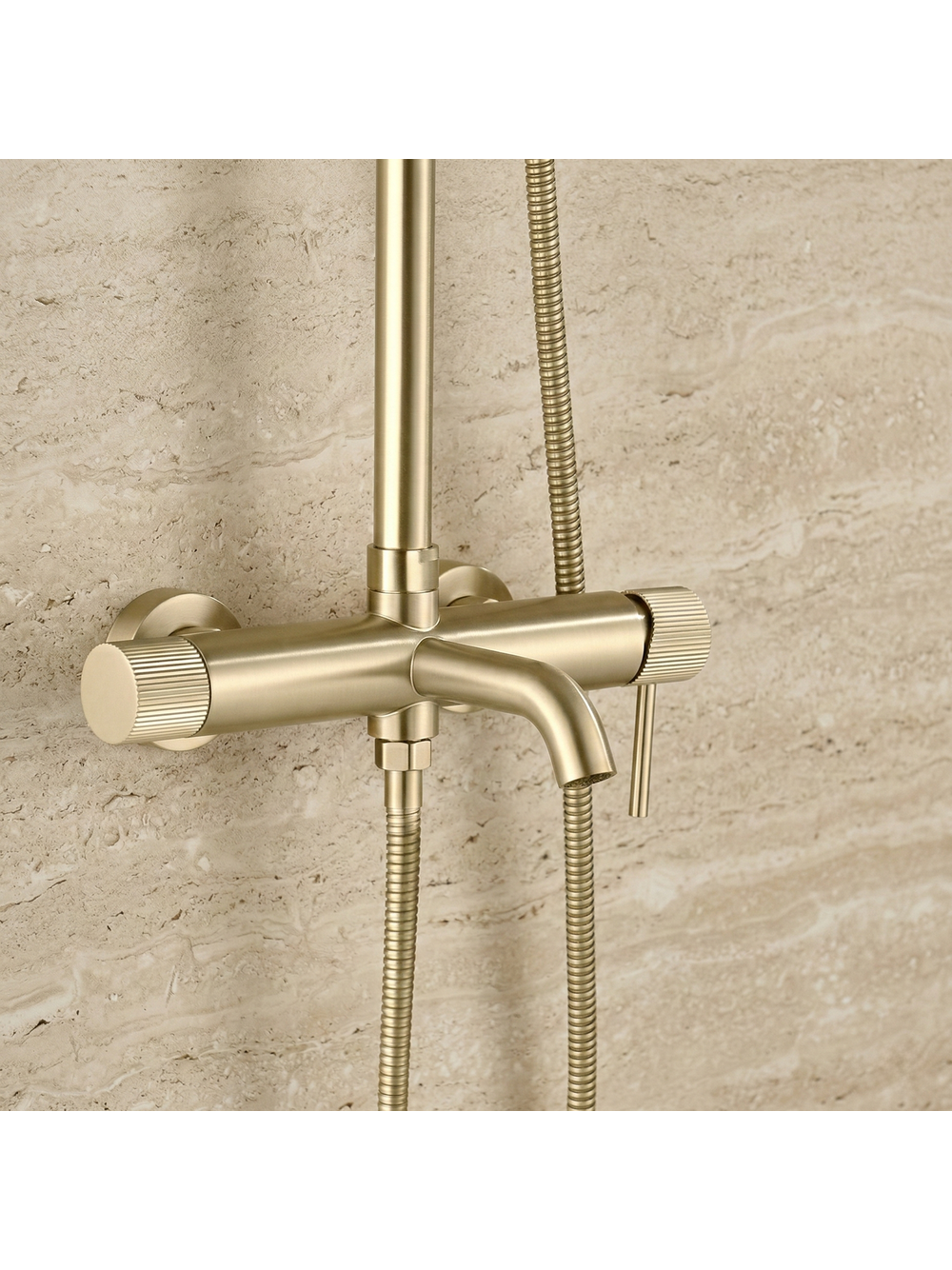 Setul de duș Rea Lungo Stripe cu finisaj Aur Periat este o alegere perfectă pentru a aduce o notă de eleganță și funcționalitate în baia dvs. Designul său modern și detaliile fine canelate îi conferă un aspect deosebit, ca al unei bijuterii. Acoperirea avansată PVD asigură o rezistență remarcabilă la uzură și o durabilitate de lungă durată.