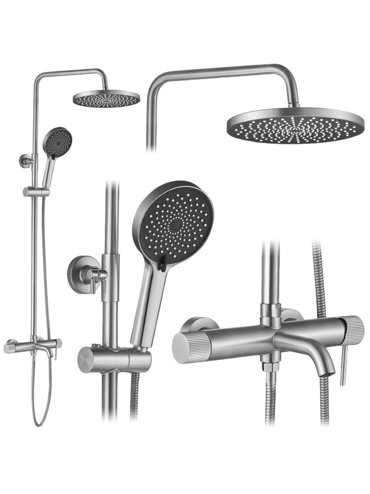 Set complet pentru baie - conține o dușă tip ploaie mare, un set de duș manual ergonomic și un robinet aplicat, oferind un confort deplin în utilizare.