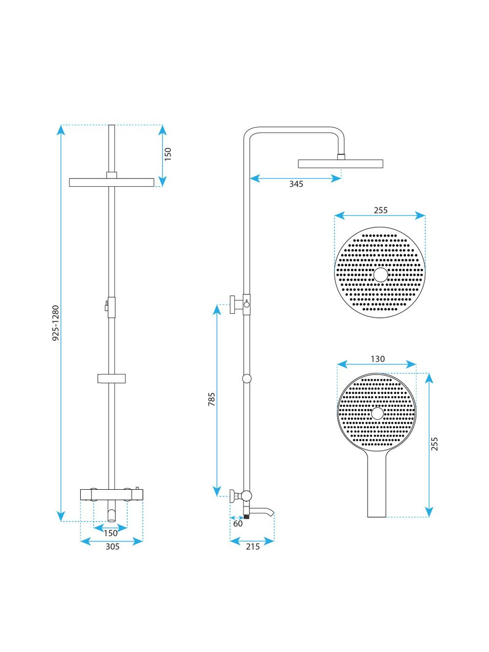 Specificații tehnice Coloana de dus Rea Lungo Stripe crom periat: