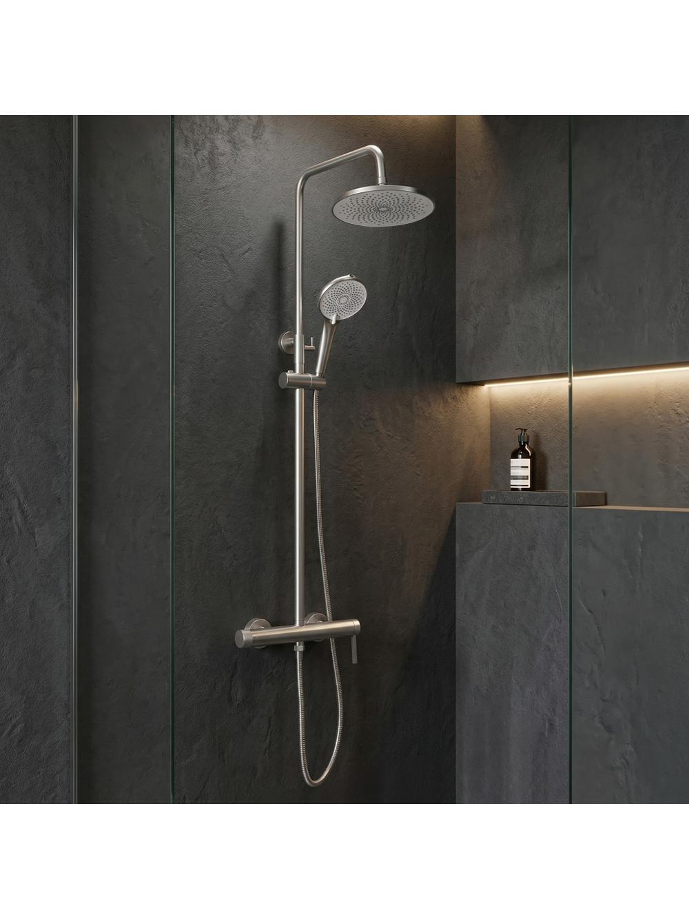 Descoperă soluția ideală pentru zona ta de duș cu setul de duș aparent Rea Rivo în finisajul modern Nichel Periat. Apreciat pentru designul minimalist și funcționalitatea bine pusă la punct, acest set te va cuceri cu corpul bateriei din alamă, înălțimea reglabilă a dușului tip ploaie și finisajul estetic realizat prin tehnologia PVD. Pară de duș multifuncțională cu jet inovator tip "bideu", cartuș ceramic pentru reglare lină a temperaturii și intensității jetului de apă, sistem Anti-Calc pentru menținerea curățeniei, și montaj aparent pentru instalare rapidă și ușoară. Setul de duș Rea Rivo este alegerea ideală pentru cei care apreciază designul modern și funcționalitatea de înaltă calitate pentru o experiență de duș confortabilă și elegantă în baia ta.