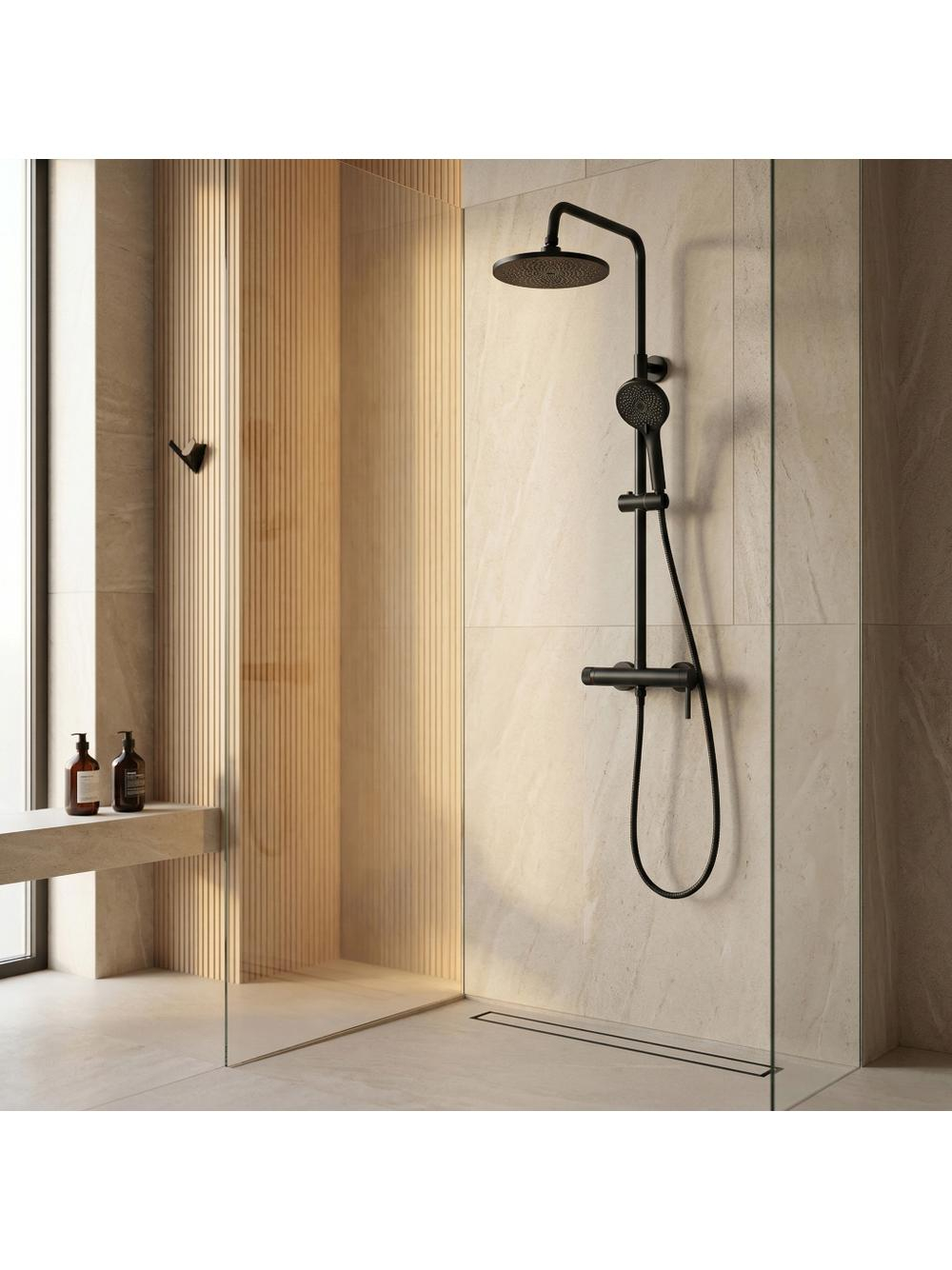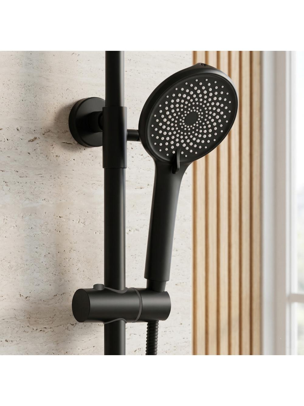 Descoperă setul de duș aparent Rea Rivo în finisajul elegant Negru Mat, alegerea perfectă pentru o baie modernă și practică. Cu design minimalist, corp din alamă și înălțime reglabilă a dușului tip ploaie, acest set aduce confort și funcționalitate inegalabile în utilizarea zilnică. Finisajul Black Mat se integrează perfect în tendințele actuale ale designului de baie, oferind un contrast profund și stilat alături de ceramică deschisă la culoare. Cu stratul Electroplating rezistent la uzură și zgârieturi, corpul din alamă garantează soliditate, etanșeitate și rezistență la coroziune.