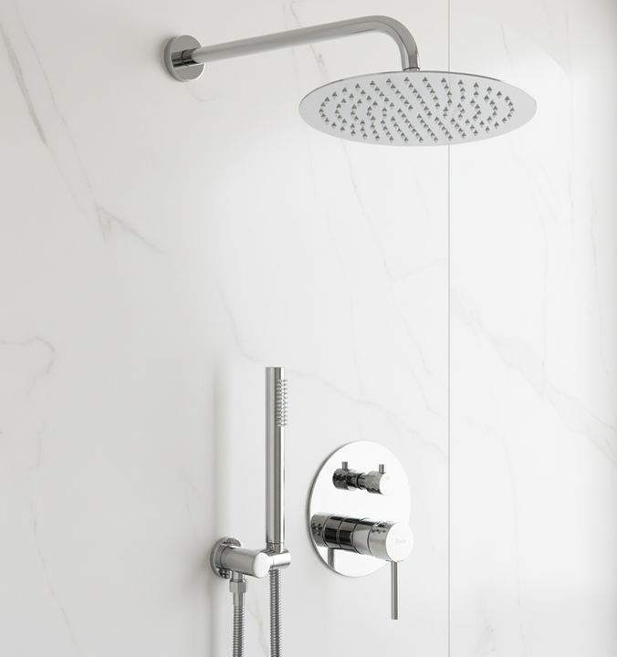 Setul de duș încastrat Lungo Chrome Diamond îmbină un design modern cu confortul utilizării zilnice. Acest pachet include o para de duș elegantă, o pară de mână practică și o baterie încastrată cu comutator de funcții, asigurând un confort deplin în timpul băii.
