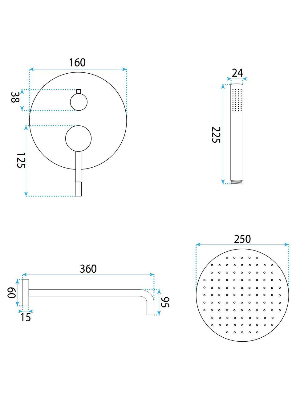 Specificații tehnice Set de dus incastrat Rea Lungo Diamond cupru + BOX: