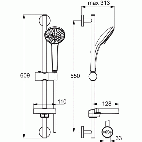 Specificatii tehnice Set de dus cu 3 functii de setare a jetului de dus Ideal Standard IdealRain: