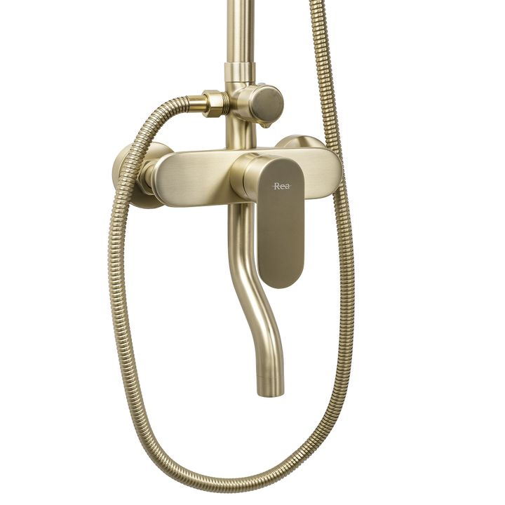 Setul de duș cu finisaj auriu periat este o alegere modernă și practică pentru a adăuga un plus de eleganță băii tale. Designul minimalist, împreunat cu aspectul luxos, transformă acest set într-o piesă perfectă atât pentru interioarele glamour, cât și pentru cele contemporane.