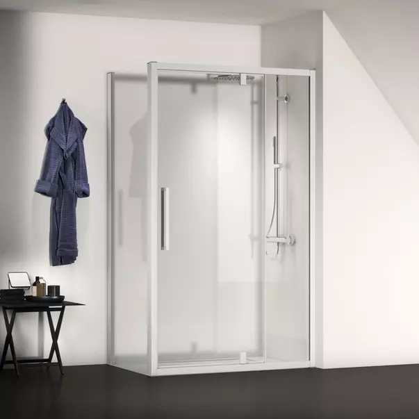 Adecvata pentru instalarea in nisa - de la un perete la altul - sau instalarea pe colt (cu panou lateral fix L)