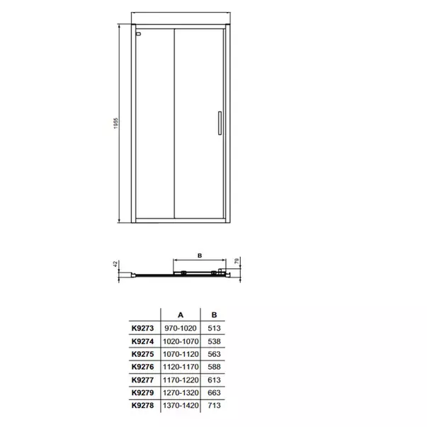 Specificatii tehnice Usa glisanta cu segment fix 110 cm negru mat Ideal Standard Connect 2:
